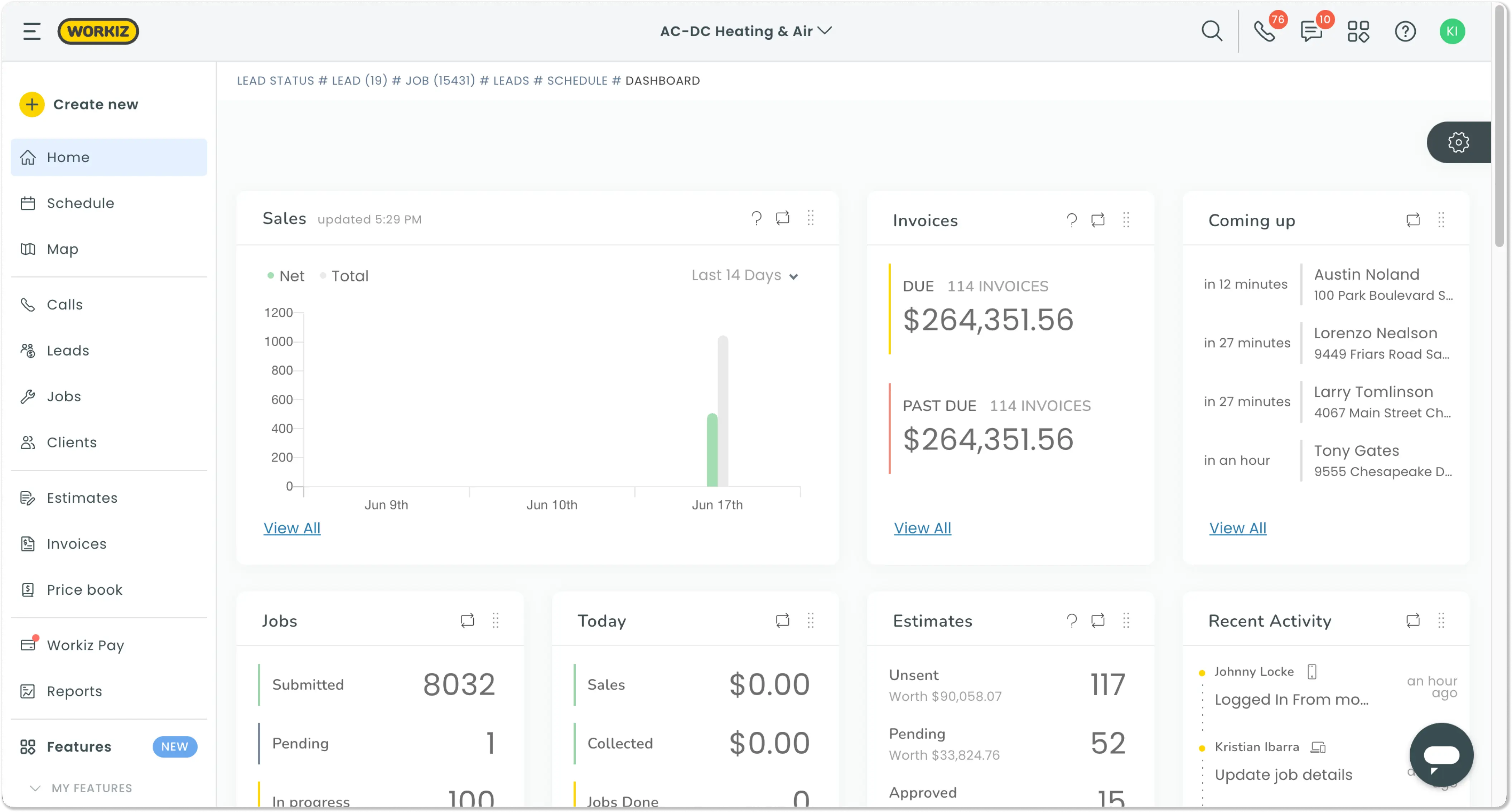 Workiz works well for field service businesses that also manage high call volumes – the communication tools and customer management set it apart from standard FSM software. As a pure CRM it's functional but not exceptional. For smaller teams that just need clean client records alongside fast invoicing, Jobber or Tofu may serve you better without the complexity.