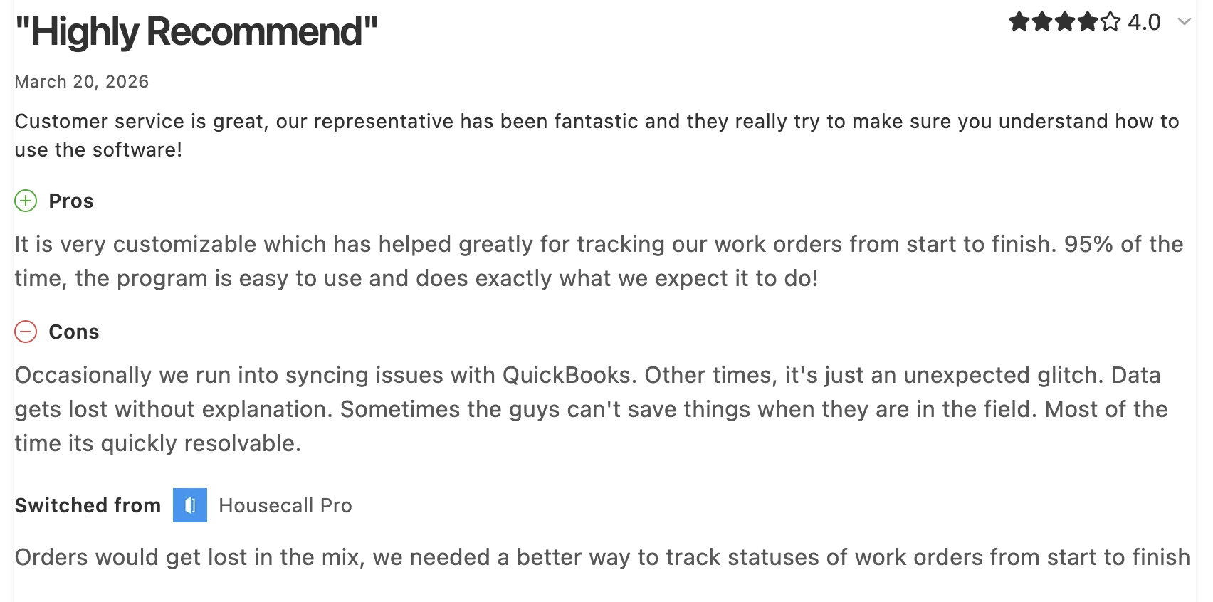 Right field service management software helps with daily operations – job scheduling, work order management, dispatching field workers, and invoicing. Accounting software handles financial reporting, payroll, and tax filing. Most such platforms integrate with accounting software like QuickBooks to sync invoices and payments, but they don't replace it. Think of them as complementary software products – one runs your field operations, the other runs your books.