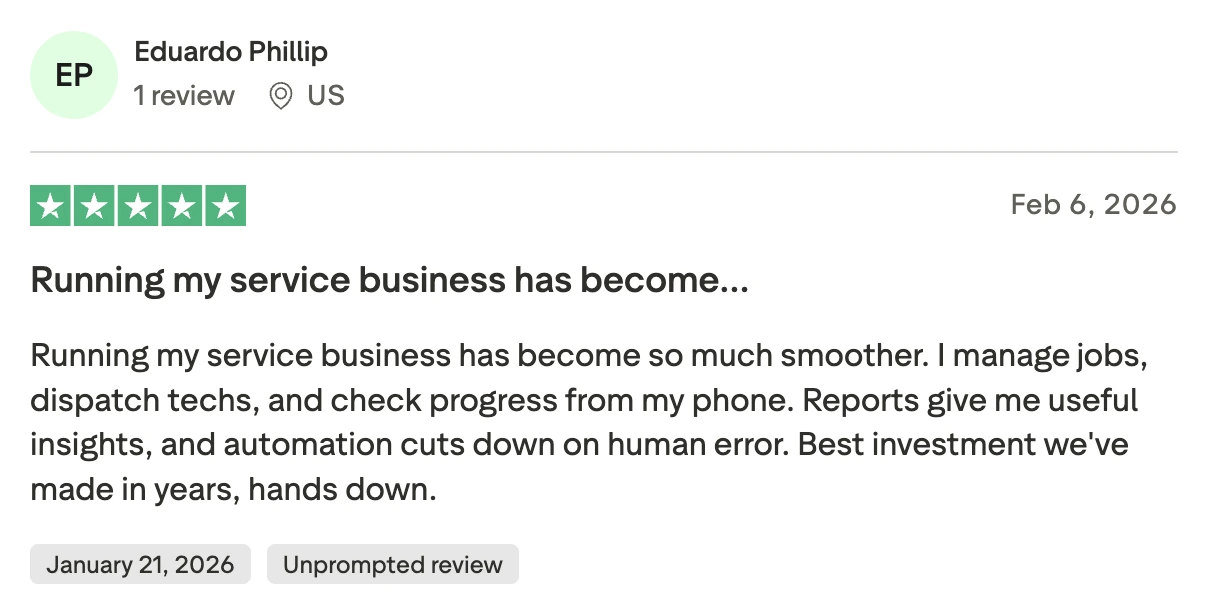 It is designed to help businesses communicate faster and more professionally. Customers get automated reminders before a tech arrives, accurate ETAs, and digital invoices they can pay immediately. Many platforms offer a client portal with full service history and online booking, keeping all customer information in one place. For field businesses, consistent communication and on-time arrivals are the biggest drivers of customer satisfaction – good software handles both systematically.