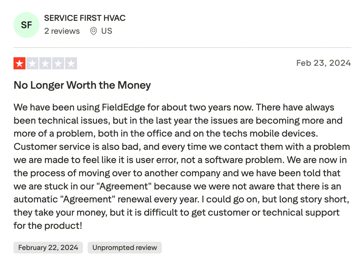 Tofu is the most affordable paid tool on this list, starting at $10/month. Workiz offers a free plan for up to 2 field service workers with real scheduling and invoicing features – the best no-cost starting point. For growing service businesses needing more depth, Jobber's Core plan at $29/month covers the essentials. ServiceTitan and FieldEdge are on the opposite end – enterprise-level costs that only make sense for established operations with dedicated office and field staff.