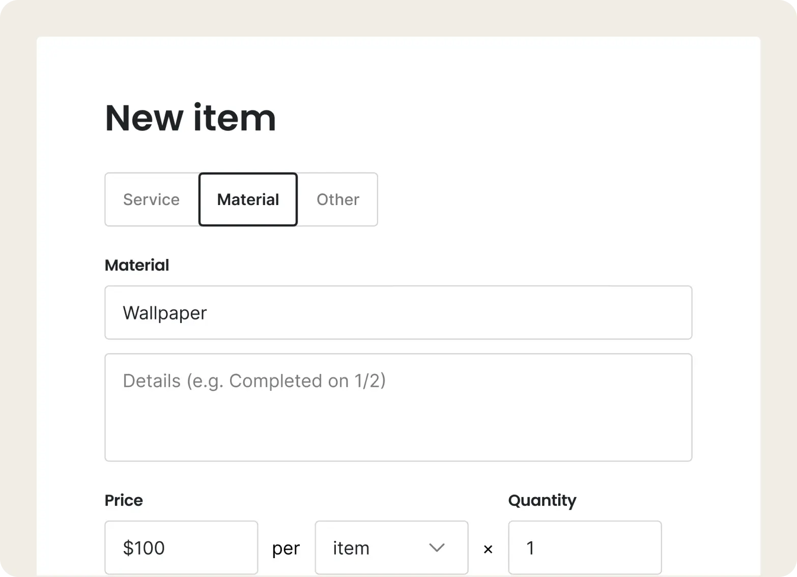 Both. From the job page, send an estimate or an invoice with one tap. When the client approves the estimate, convert it to an invoice instantly – no spreadsheet, no switching apps.